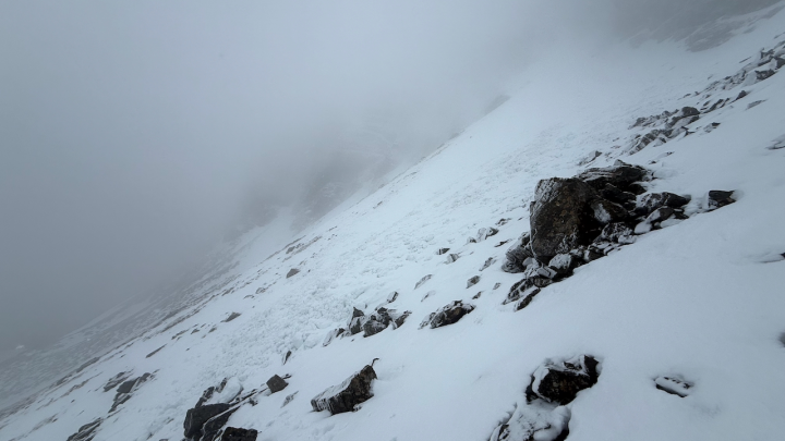 The period started with warm weather and only very limited patches of snow. Snow showers started on Tuesday afternoon and have continued since then. Winds have been strong and from between a Southerly and Westerly direction leading to a substantial build up of windslab mainly on North to East aspects.