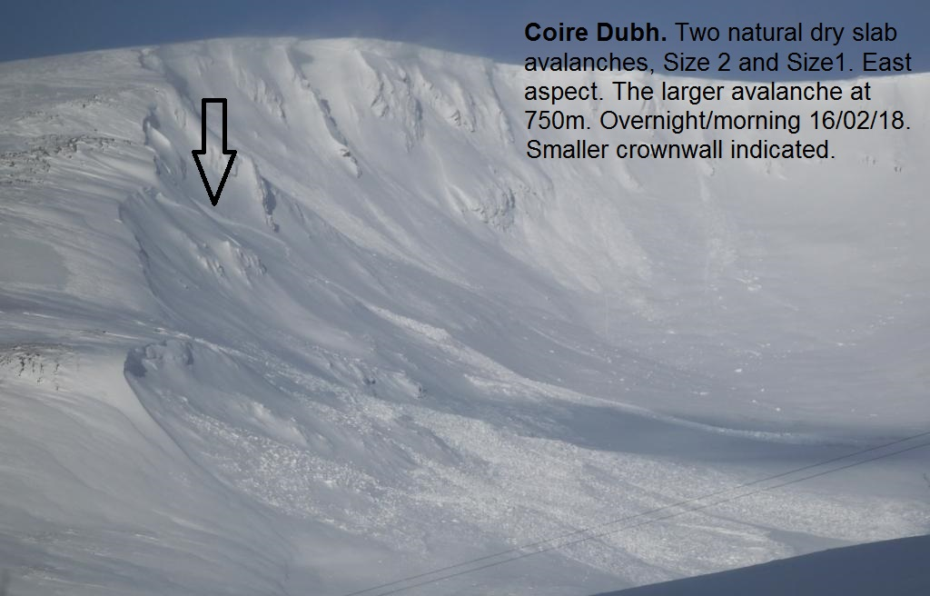 Windslab instabilities were widespread to start the period and avalanche activity was recorded on North through NE to Easterly aspects. At the start of the week a thaw with overnight rain to all levels resulted in a period of high instability and numerous cornice triggered wet snow events, some of which, particularly on Easterly aspects brought debris down to coire floors. Dry cool conditions now affect the area resulting in a re-frozen and stable snowpack.