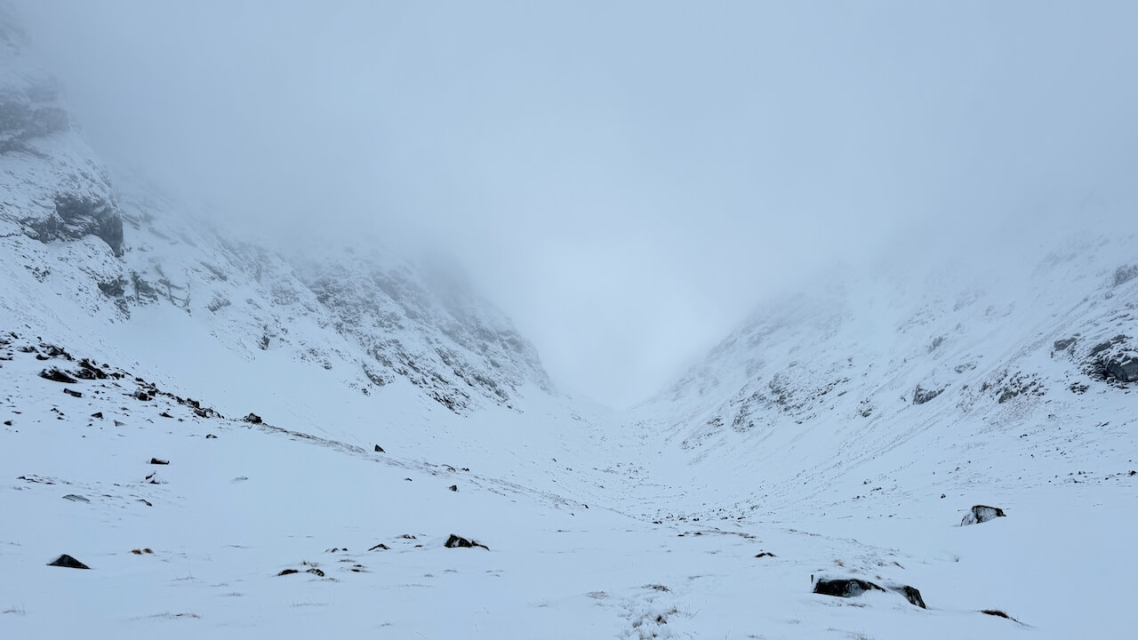 CosmeticCold conditions with sporadic snow showers. Accumulations have yet to develop and achieve any significant depth in the Creag Meagaidh range. There exists a general cover at all elevations with snow lying on approach paths, the generally light winds to-date have not resulted in many drifted areas. Some new snow instabilities are now beginning to develop on North through to Easterly aspects above 850 metres