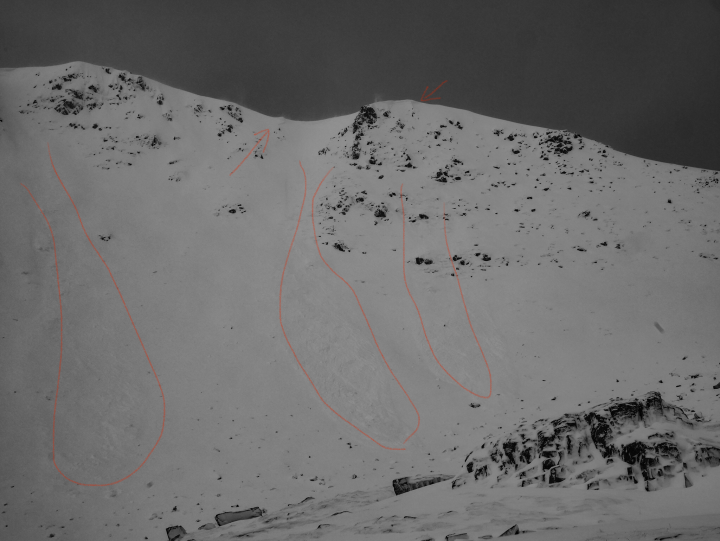The stormy conditions have continued. Winds have been strong with snowfall occurring most days which has continued to build up large areas of windslab and bury huts and lifts in the ski area. There has been some avalanche activity recorded, most notably a large natural avalanche out of Great Gully on Buachaille Etive Mor on Sunday night. It is likely there has been a lot of avalanches which have not been recorded due to the poor visibility.