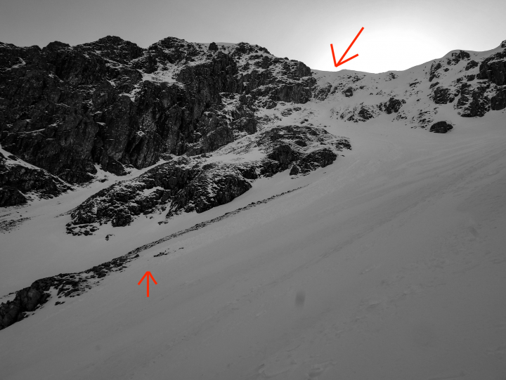 Early in the period it was mild and damp, with little in the way of a snow pack and a low avalanche hazard. On 11th and 12th conditions changed with strong West or North Westerly winds bringing much colder conditions and snow showers. Although many areas were scoured, and there does not look like much fresh snow from road level, some deep areas of windslab were deposited. Although not extensive these tended to be poorly bonded.