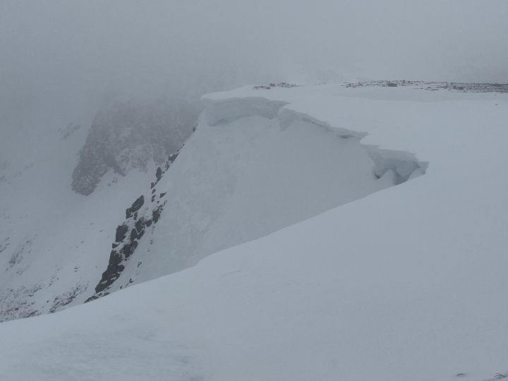 At the start of this period heavy snow showers fell to all levels on very strong winds this led to substantial windslab accumulations on many aspects above 700 metres particularly on NW to E aspects. This was followed by a significant thaw to all levels, which created a period of high instability. The freezing level then dropped to lower levels and the moist snowpack refroze at all levels. The snowpack is now refrozen, firm, icy and stable. Many cornices are still present and some very large.