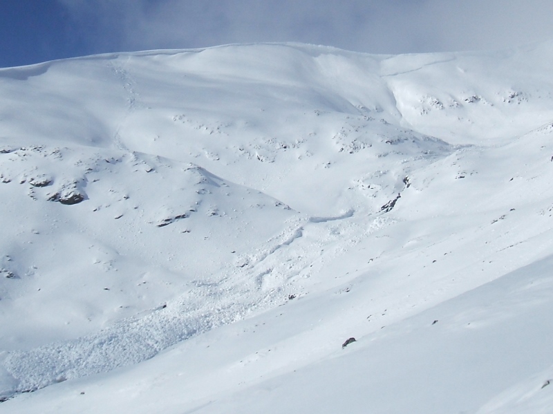 Wintery conditions returned last Friday 21 March with a fair amount of new snow over the next two days mainly above 800 metres. Victim triggered avalanches were recorded on Sunday. Windy conditions followed with strong to gale South-Easterlies affecting the area. Natural avalanches were recorded on East and North West slopes. On Tuesday a return to milder conditions saw rain affecting all levels. Wednesday was dry and mild and Thursday colder with snow showers and Easterly winds.