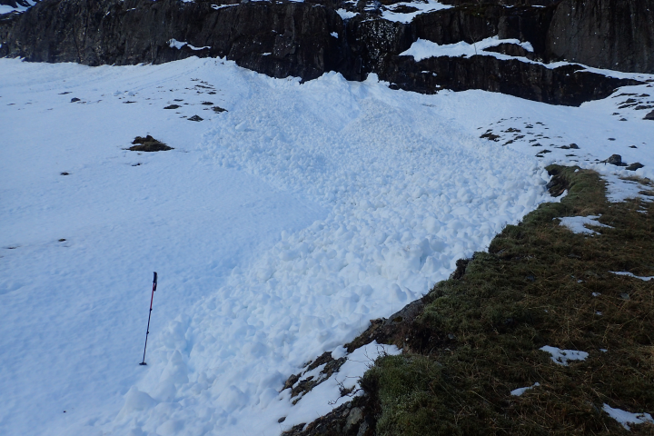 The period started with a stable spring snowpack. Over the next few days there was a little snow at higher levels, but these quantities were not large. Later in the period conditions turned a lot more spring like with mild temperature and strong sunshine having a significant affect on the snowpack on Southerly aspects. One avalanche and one significant cornice collapse occurred during this period.