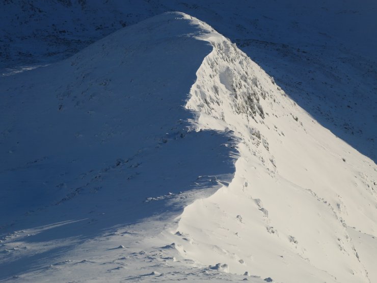 A return to winterThe start of the period was very mild, very wet and very windy resulting in depleted snow cover. Winter returned with a bump and within a few days snow accumulations started to develop with snow lying above c.650 metres. Windslab and cornices problems started to develop mainly on North-West through North to South-East aspects above 900 metres. These have started to consolidate over time but still remain.