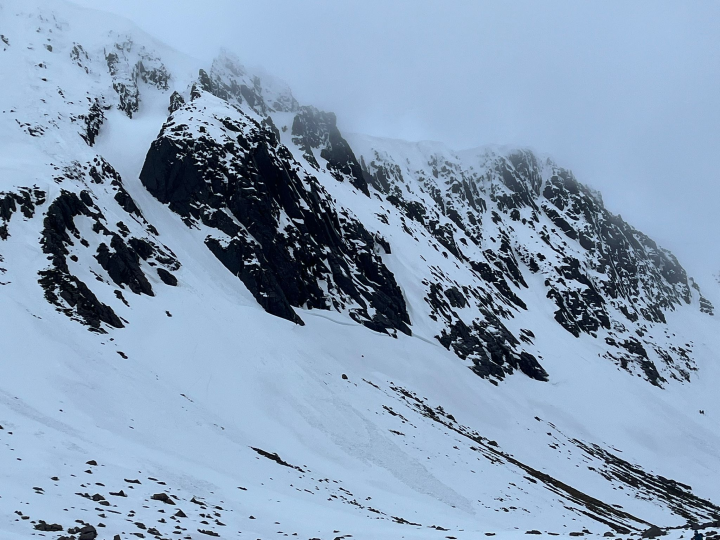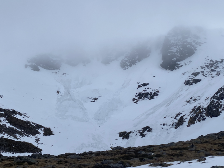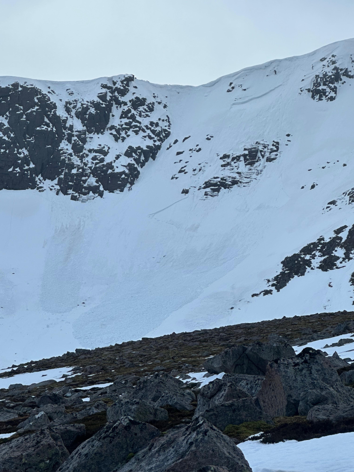 A general thawCooler conditions at the start of the period, with isolated windslab accumulations developing mainly around coire rims. Later mild, wet and windy conditions set in leading to a general thaw at all altitudes. Currently the snowpack continues to thaw and is generally well bonded and stable throughout. The greatest extent of snow is above 1000 metres, around coire back walls, flanks and the plateau.