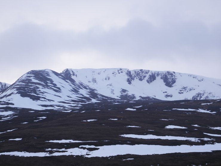 A patchy landscapeDespite the good covering of snow from glen levels up, a significant thaw became established during the latter part of the weekend. Within a 24 hour period, the landscape dramatically changed to leave only snow patches and ribbons. Mild air has continued since, diminishing any remaining snow. Any remaining patches are moist with good stability.