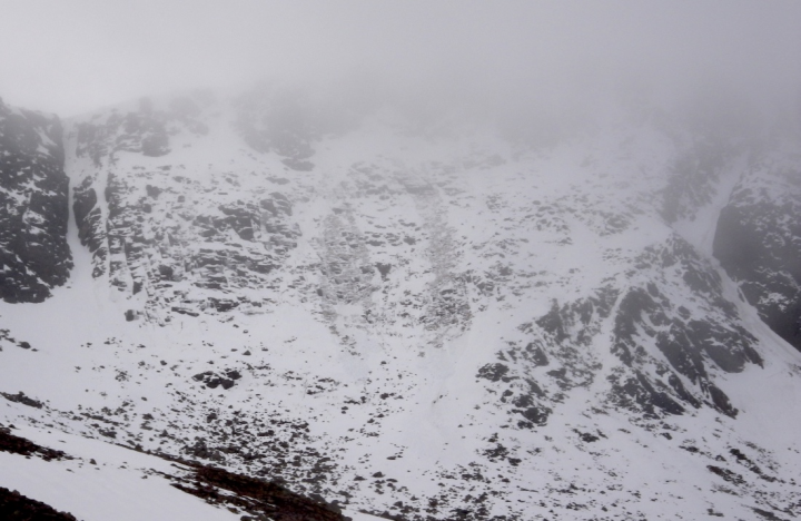 A patchy landscapeDespite the good covering of snow from glen levels up, a significant thaw became established during the latter part of the weekend. Within a 24 hour period, the landscape dramatically changed to leave only snow patches and ribbons. Mild air has continued since, diminishing any remaining snow. Any remaining patches are moist with good stability.