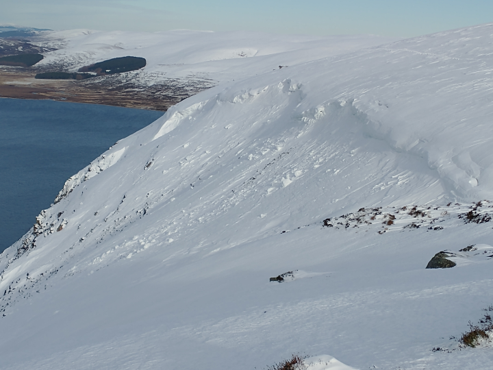 A cold week.It has been a cold week, mostly dry but occasional strong winds led to some drifting and redistribution of existing deposits. There is a light covering of snow from low levels with only a few deeper areas in sheltered locations. Areas of unstable windslab developed, mainly in N to E facing corries above 900 metres. These areas were very localised and generally avoidable.