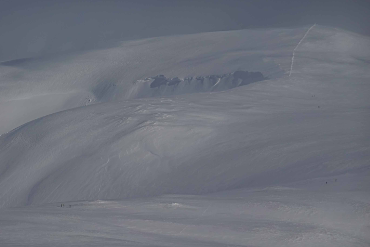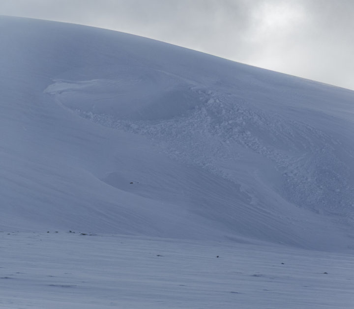 It's been a wintry week on the hills. It started with generally avoidable areas of windslab but midweek there was a good fall of snow on gale force winds. This led to a more extensive cover on the hills and deeper areas of windslab. A period of consolidation helped, with the hazard level lifting to around 1000m, before some more heavier snowfall in more gale force winds. North to East aspects are mostly affected and debris was noted at the bottom of some Lochnagar gullies, on Thursday.