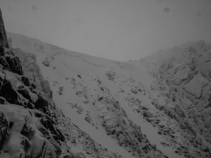 A mixed week.This period saw a mix of conditions, some cold clear days, brief milder periods and some snowfall. Ice was readily forming on crags but was lost when milder conditions moved over the area. Most of the snowpack is currently firm and icy with softer unstable snow generally restricted to corrie rims. The majority of the snow cover is to be found on higher North to East facing aspects and high plateau areas.