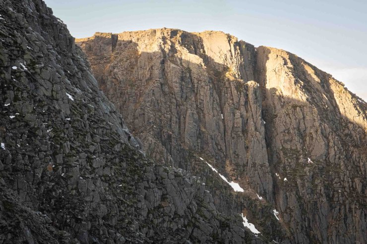 Light cover on most aspects.Currently there is well bonded snow in varying depths on most aspects from lower levels. The last two days have been very mild around the summits with the snow cover starting to diminish. Buttresses have become black and cover in gullies generally poor. Limited areas of hard snow and ice will be encountered in some locations.