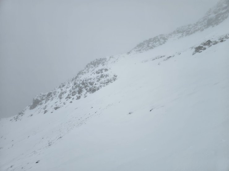 Thaw conditions.The period began with a little fresh snow which gave a welcome whiter appearance to the hills above 800 metres. This was mainly wet snow that was well bonded, and the hazard remained Low. As the week progressed milder conditions took over and this “fresher snow” thawed, leaving just the older snow remnants. Then very wet mild conditions set in which further depleted these old snow patches, leaving only patches of snow on mainly inland mountains around coire rims above 850 metres.